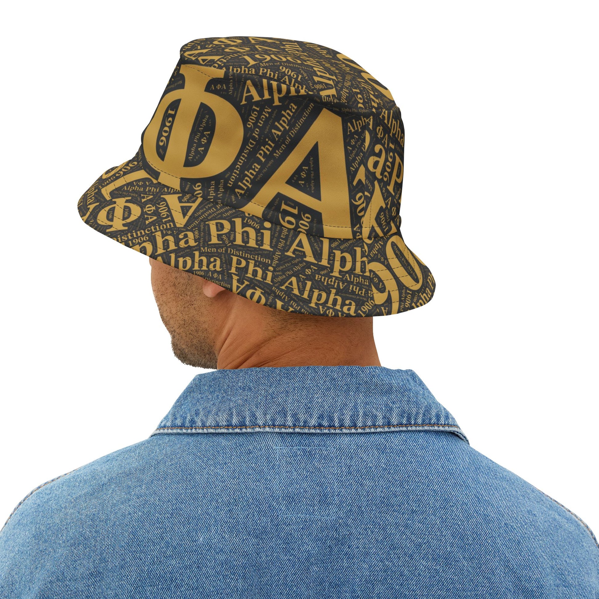 Alpha Phi Alpha Black & Old Gold Printed Bucket Hat | The "Ice Cold" Legacy Crown